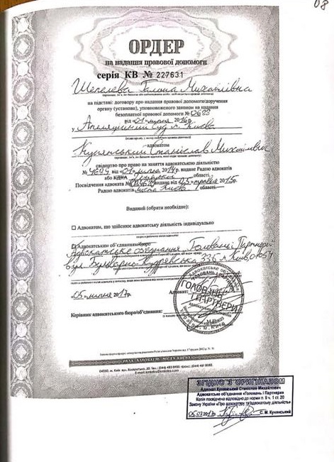 Также в распоряжении "Страны" оказалась копия ордера на предоставление правовой помощи Галине Шепелевой адвокатским объединением "Голованов и партнеры".