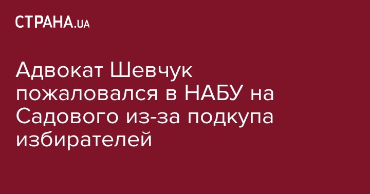 Адвокат Алексей Шевчук подал заявление в Национальное антикоррупционное бюро Украины с требование открыть дело о подкупе избирателей в отношении Андрея Садового.