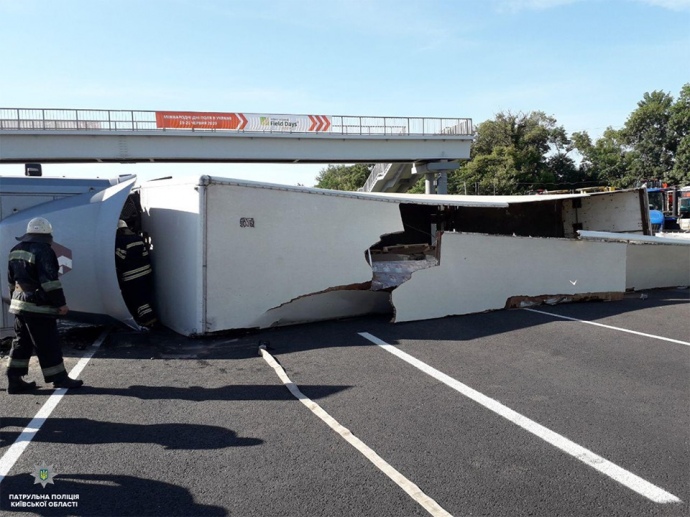 На трассе Киев-Одесса BMW не поделил дорогу с фурой и та перевернулась посреди дороги. Фото
