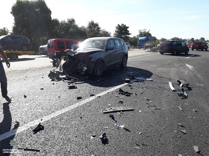 На трассе Киев-Одесса иномарка BMW X3 врезалась в грузовик Renault Magnum 480, в результате чего фура перевернулась и заблокировала движение. К счастью, авария обошлась без жертв. Об этом 26 июня сообщает патрульная полиция Киевской области.