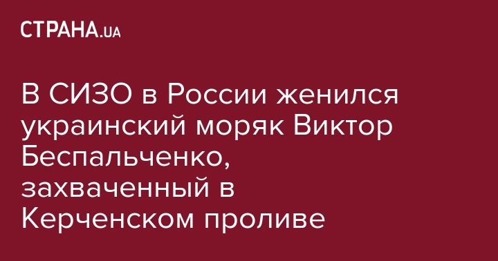 В российском СИЗО женился захваченный в Керченском проливе украинский моряк Виктор Беспальченко. Об этом говорится на фб-странице адвоката Николая Полозова в среду, 26 июня.