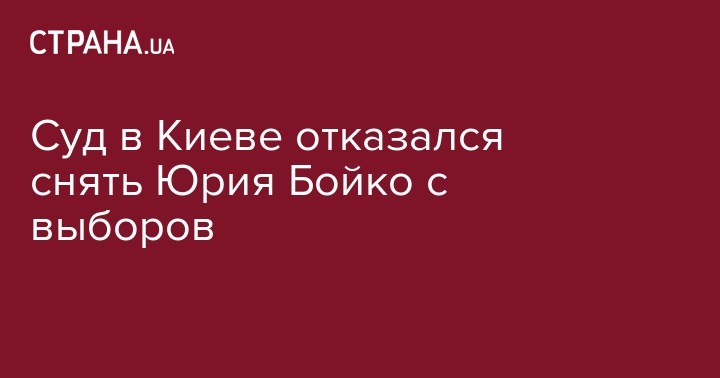 Шестой апелляционный админсуд Киева отказал в удовлетворении иска члена партии "Оппозиционный блок", которая просила признать противоправным и отменить постановление ЦИК о регистрации кандидатом в народные депутаты одного из основателей партии "Оппозиционная платформа – За жизнь" Юрия Бойко.