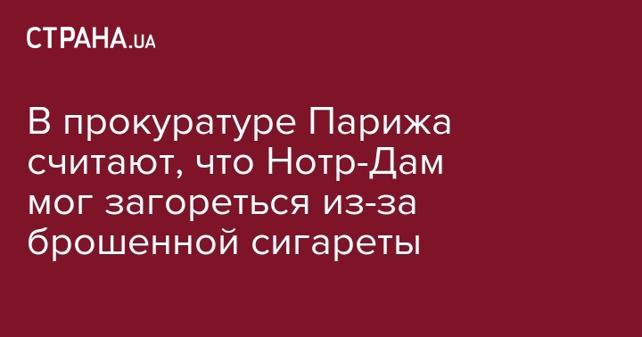 Причиной пожара в Нотр-Даме могла стать непотушенная сигарета или неисправность электричества. Об этом передает Le Figaro со ссылкой на парижского прокурора.