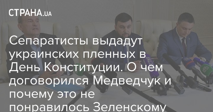 28 июня "ЛДНР" выдаст Киеву четырех пленных, удерживаемых на Донбассе. И это будет первая выдача пленных с 2017 года. О выдаче договорился Виктор Медведчук путем прямых переговоров с лидерами сепаратистов. Причем без ведома Владимира Зеленского. И Медведчук, и Зеленский уже прокомментировали выдачу пленных, которая состоится в День Конституции.