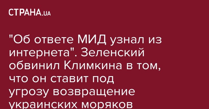 "Это (отсутствие решения по смене главы МИД – ИФ) приводит к тому, что я как президент Украины узнаю информацию о наших международных шагах из Интернета… Я сейчас говорю о ноте, которую мы сейчас получили от Российской Федерации относительно возвращения наших моряков и о ноте–ответе, которую отправил МИД (Украины – ИФ)", - сказал Зеленский на брифинге в администрации президента в четверг.
