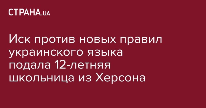 Постановление правительства об утверждении новой редакции правописания украинского языка оспаривает 12-летний ребенок, ученица 7-го класса из Херсона Юлия Пиргас. Об этом сообщает УНИАН.