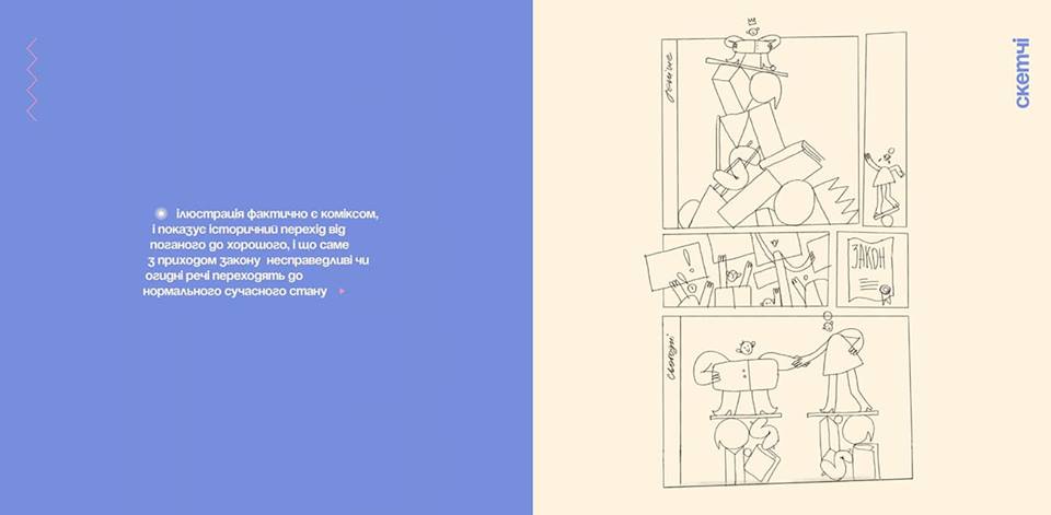 "Замечательная, а главное нужна инициатива от издательства "Основы" - создать "Конституцию Украины" для детей. Интересную и понятную нашим маленьким гражданам. Пока, это рабочие эскизы. Уверен, что все получится! С Праздником!" - говорится в сообщении.