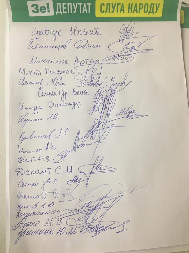Кроме того, кандидаты обещают вести дискуссии относительно содержания законопроектов на заседаниях фракции, быть достойными звания народного депутата и представителя партии в парламенте, добровольно сложить депутатские полномочия в случае нарушения ключевых принципов партии и положений меморандума.