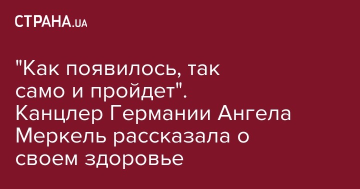 "Как появилось, так само и пройдет". Канцлер Германии Ангела Меркель рассказала о своем здоровье