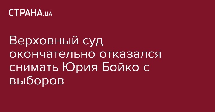 Верховный суд 29 июня отклонил жалобу члена партии "Оппозиционный блок" Виктории Слободенюк об отмене регистрации сопредседателя партии "Оппозиционная платформа - За жизнь" Юрия Бойко кандидатом на выборы. Об этом пишет 112.ua.