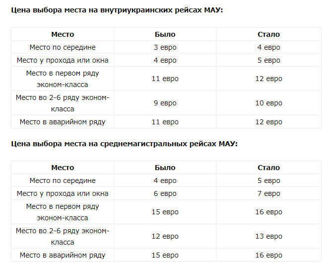 Отметим, что сейчас диапазон цен за выбор или изменение места находится в пределах 4-12 евро для внутренних рейсов, 5-16 евро для среднемагистральных рейсов и 10-45 евро для дальнемагистральных рейсов.