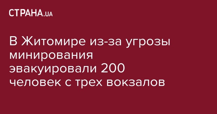В Житомире из-за угрозы минирования с трех вокзалов эвакуировали около 200 человек. Об этом сообщает пресс-служба местной полиции.