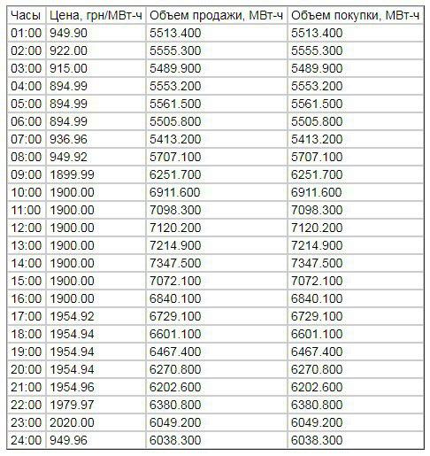 В период в период максимальной суточной нагрузки (с 08:00 до 23:00) граничные почасовые цены колебались от 1899 до 2020 грн за МВт-ч (без НДС), в период минимальной нагрузки (с 00:00 по 08:00 и 23:00 по 24:00) – от 894 грн до 949 грн за МВт-ч (без НДС).