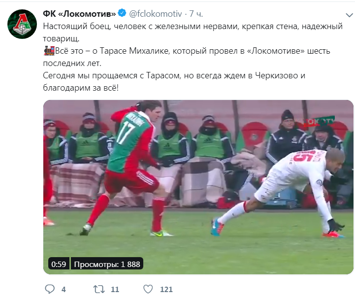 Тарас Михалик ушел из московского "Локомотива": у спортсмена закончился контракт с российским футбольным клубом. Об этом пресс-служба клуба сообщила в Twitter.