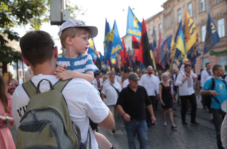 "По улицам Львова прошло шествие, к которому присоединились активисты националистических организаций и рядовые львовяне. Большинство присутствующих по случаю праздника оделись в вышиванки", - говорится в сообщении политсилы.