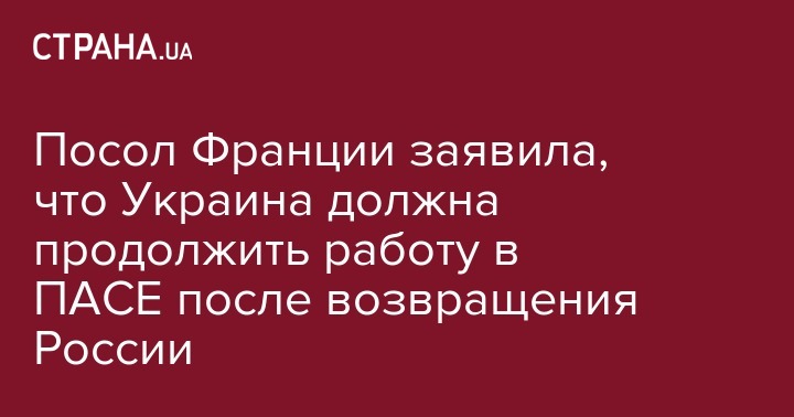 Посол Франции в Украине Изабель Дюмон считает, что украинская делегация в Парламентской ассамблее Совета Европы (ПАСЕ) должна продолжить работу, несмотря на возвращение делегации России. Об этом она сообщила агентству "Интерфакс-Украина".