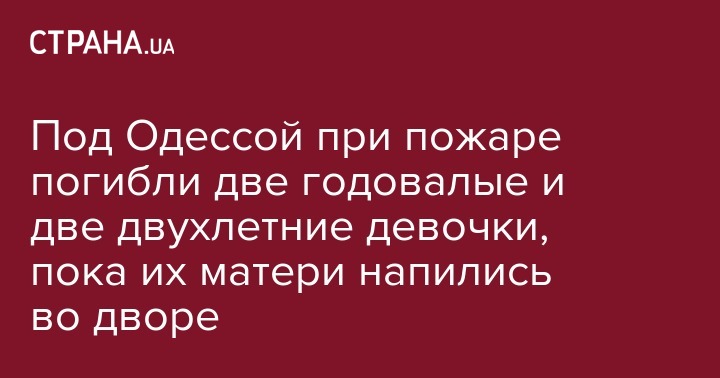 Под Одессой при пожаре погибли две годовалые и две двухлетние девочки, пока их матери напились во дворе