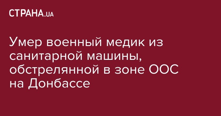 Умер военный медик из санитарной машины, обстрелянной в зоне ООС на Донбассе
