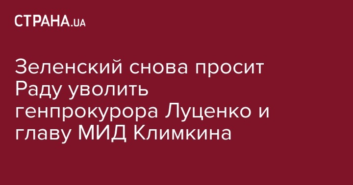 Президент Украины Владимир Зеленский повторно обратился к Верховной Раде с просьбой неотложно рассмотреть представления об увольнении генерального прокурора Юрия Луценко, а также освобождения от должности министра иностранных дел Павла Климкина и назначении на этот пост Вадима Пристайко. Об этом сообщается на сайте главы государства.