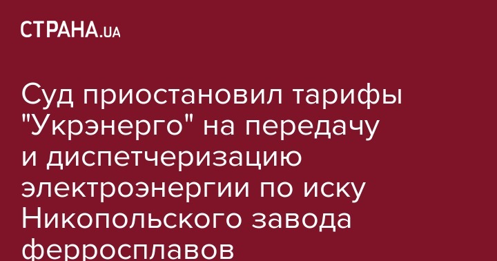 Суд приостановил тарифы "Укрэнерго" на передачу и диспетчеризацию электроэнергии по иску Никопольского завода ферросплавов