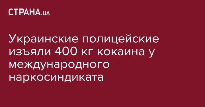 Полиция Украины раскрыла международный синдикат наркоторговцев и конфисковала 400 кг кокаина на сумму 60 млн. долларов. Об этом сообщает агенство "Интерфакс-Украина".