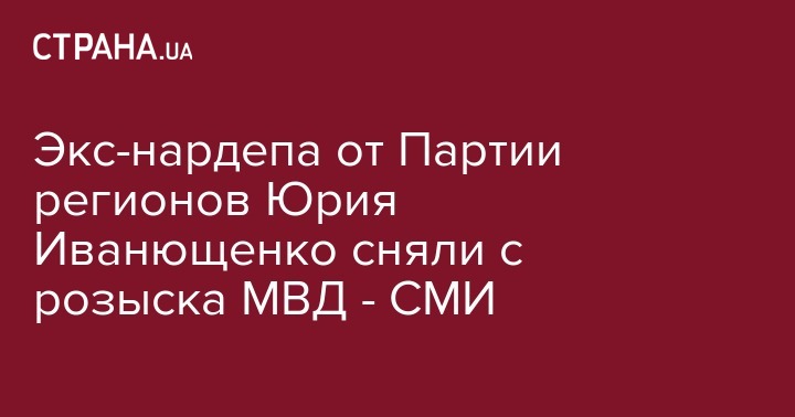 Бывшего соратника Виктора Януковича, бывшего народного депутата от "Партии регионов" Юрия Иванющенко сняли с розыска. Информация о его розыске исчезла из базы Министерства внутренних дел. Об этом сообщает "Украинская правда".