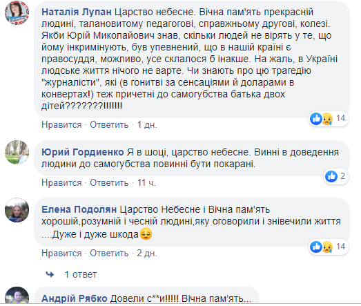 В комментариях пользователи высказывают соболезнования, некоторые считают, что мужчину довели до самоубийства. Среди комментариев опубликовано письмо, написанное от руки. Послание может быть предсмертной запиской погибшего. Автор записки утверждает, что его жизнь была разрушена клеветой.