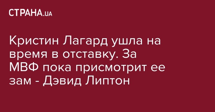Кристин Лагард ушла на время в отставку. За МВФ пока присмотрит ее зам - Дэвид Липтон