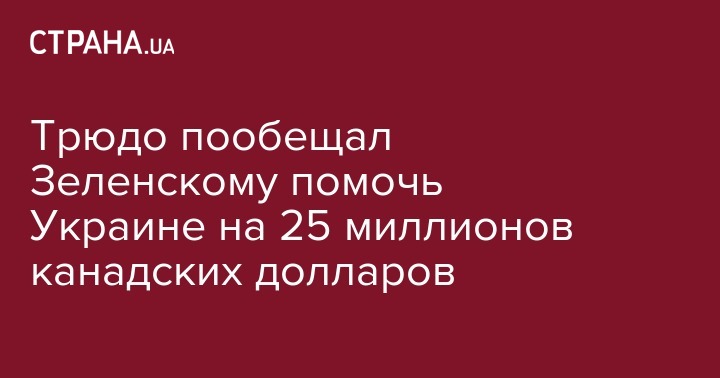 Правительство Канады выделит Украине 25 млн канадских долларов на поддержку демократических реформ. Как сообщает газета "Сегодня", об этом заявил канадский премьер-министр Джастин Трюдо после встречи в Торонто с Владимиром Зеленским.