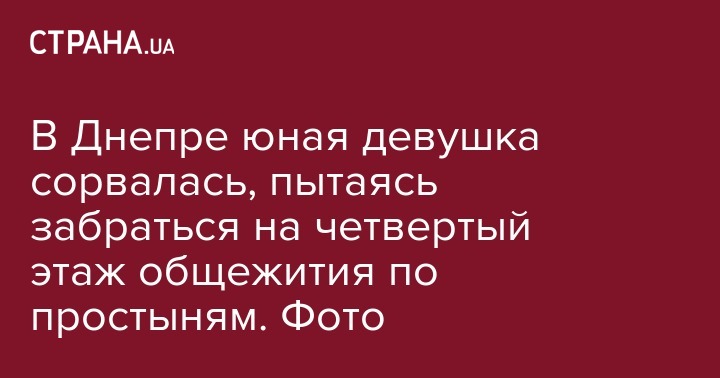В Днепре несовершеннолетняя девушка пыталась забраться в окно на четвертом этаже общежития по простыням, но потерпела неудачу и сорвалась вниз. Инцидент произошел в среду, 3 июля, в общежитии Автотранспортного колледжа НТУ на проспекте Александра Поля. Об этом сообщает "Информатор".