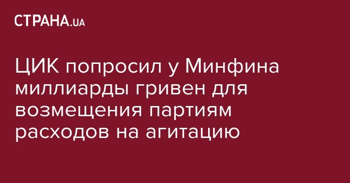 Центральная избирательная комиссия Украины обратилась к Министерству финансов с предложением оплатить из бюджета расходы партий на агитацию. На эти цели ЦИК попросил 2 253 420 000 грн. Текст обращения опубликован пресс-службой ЦИК в Facebook.