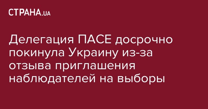Делегация членов ПАСЕ, которая пребывала в Украине, чтобы оценить предвыборных климат, решила досрочно покинуть страну из-за решение Рады отозвать свое приглашение ПАСЕ для наблюдения за досрочными парламентскими выборами 21 июля, передает Интерфакс-Украина.