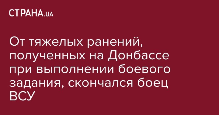 От тяжелых ранений, полученных на Донбассе при выполнении боевого задания, скончался боец ВСУ