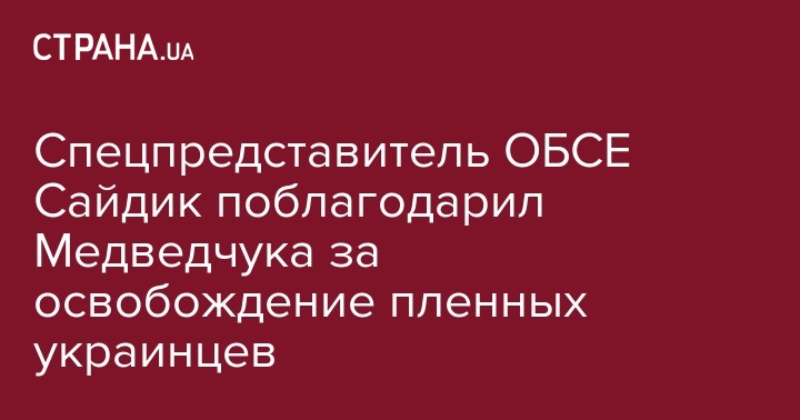Спецпредставитель ОБСЕ Сайдик поблагодарил Медведчука за освобождение пленных украинцев