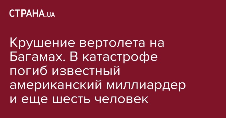 Крушение вертолета на Багамах. В катастрофе погиб известный американский миллиардер и еще шесть человек