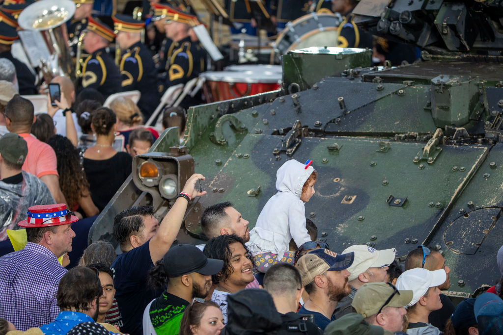 Парад прошел с участием ВВС, авиационной группы "Голубые ангелы" и боевых танков M1 Abrams.