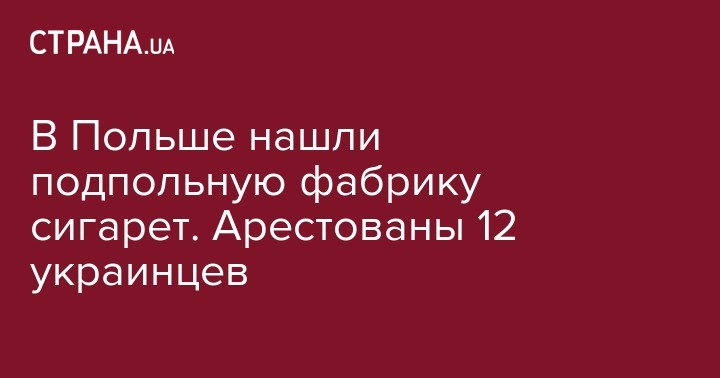 В Польше в городе Пекары Шленск (Силезское воеводство) обнаружили незаконную фабрику по производству сигарет. В связи с этим задержаны 14 человек, 12 из которых - украинцы. Об этом сообщает "Польское радио".