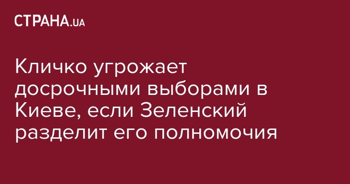 Киевский мэр Виталий Кличко заявил, что выступит за досрочные выборы городского головы, если в Верховной Раде примут решение разделить полномочия мэра и главы Киевской администрации (ранее с этой инициативой выступили представители Зе-команды).