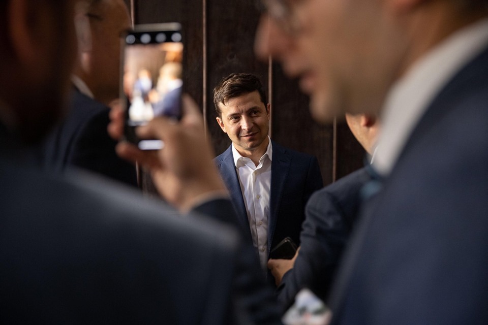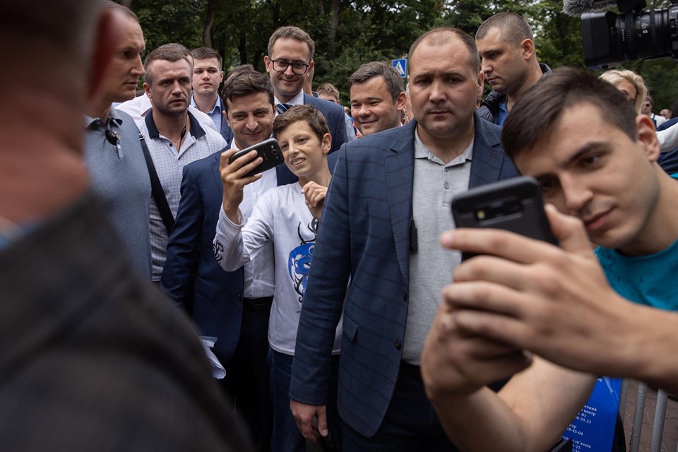 Владимир Зеленский сделал несколько селфи с жителями Львова. На некоторых снимках видно, что его сопровождают охранники, из-под одежды которых видно оружие.