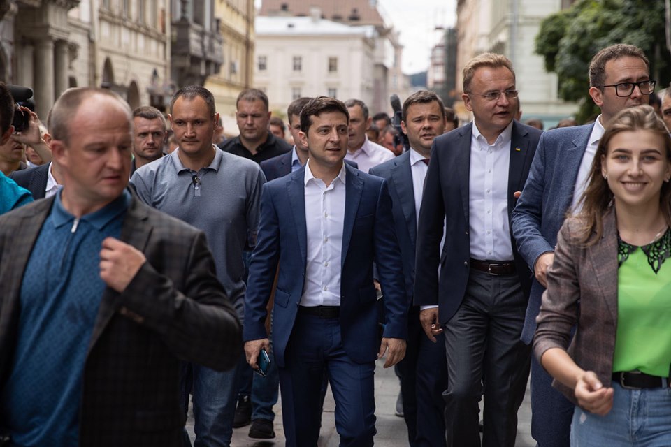 Зеленский прогулялся по Львову в компании Садового и вооруженных охранников