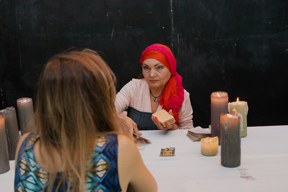 Присутствующие на празднике выстраивались в очереди к гадалке, другие - за вкусной едой на стогах сена, а кто-то в это же время проходил увлекательный и загадочный квест в поисках легендарного цветка папоротника, который приносит счастье и любовь. На празднике можно было сделать красочные фото в пяти фотозонах, которые стали частью лабиринта. А после оказаться в торговом павильоне с интересными аксессуарами, одеждой, картинами и косметикой.По обе стороны локации размещались сцены, где гости могли сидеть на траве или пуфах, и даже качаться на гамаках.