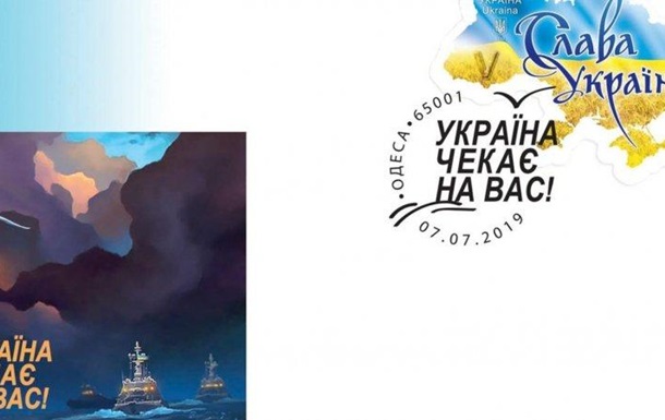 На конверте изображена картина Маленький кораблик, возвращайся домой. Ее художница создала в поддержку украинских моряков, захваченных Россией в районе Керченского пролива.