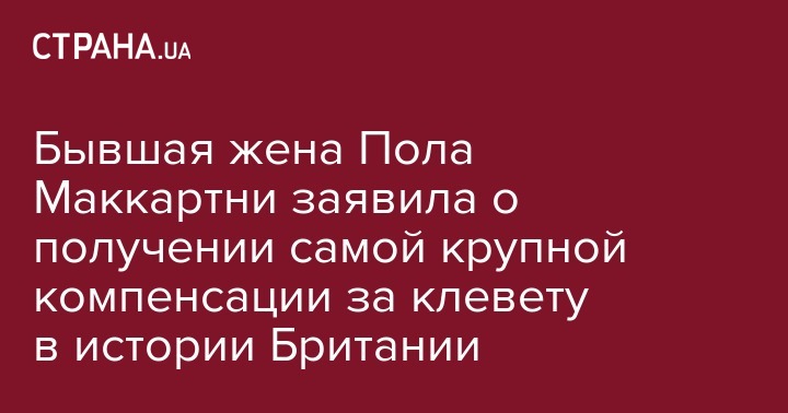 Бывшая жена Пола Маккартни заявила о получении самой крупной компенсации за клевету в истории Британии