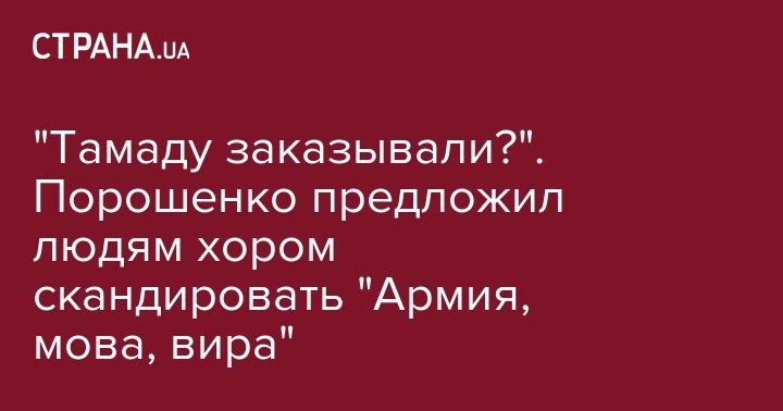 На ролике видно, как лидер "Европейской солидарности", выступая на сцене, обращается к собравшимся: "Давайте проверим! Еще раз! Армия! Ес! (каждый раз после выкрика "Ес!" делает характерный жест локтем вниз - Прим. Ред.) Нет-нет! Еще раз! Армия! Ес! Вира! Ес! Мова! Ес! Армия! Мова! Вира! Ес! Ес! Ес!"