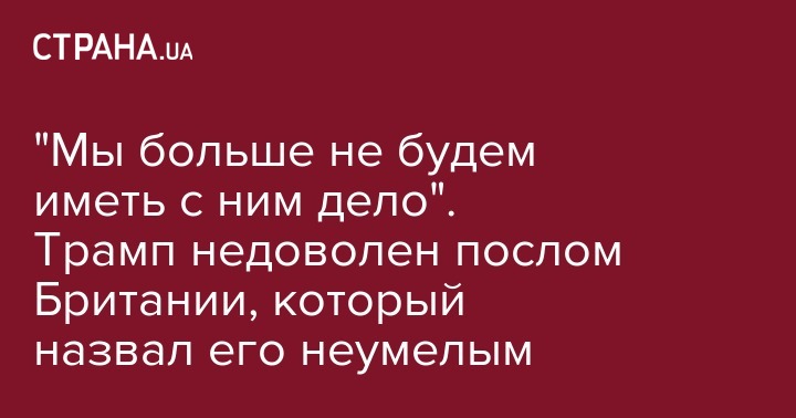 "Я очень критически относился к тому, как Великобритания и премьер-министр Тереза Мэй обращались с Брекситом. Какой беспорядок она и ее представители создали... Я не знаю посла, но в США его не любят и не думают о нем хорошо. Мы больше не будем иметь с ним дело", - написал Трамп.