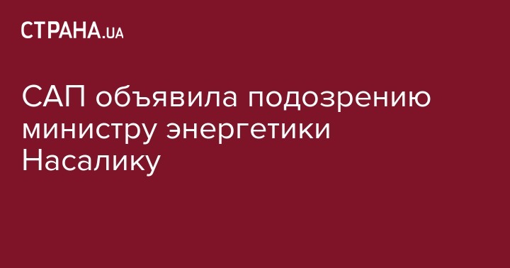 Детективы Национального антикоррупционного бюро Украины (НАБУ) по согласованию с прокурором Специализированной антикоррупционной прокуратуры сообщили о подозрении министру энергетики и угольной промышленности Игорю Насалику по факту внесения в электронные декларации недостоверных сведений. Об этом сообщается на странице САП в соцсети.