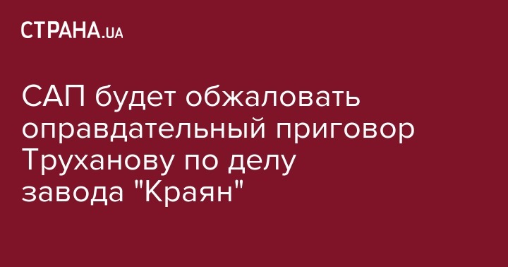 В Специализированной антикоррупционной прокуратуре (САП) решили обжаловать оправдательный приговор в деле мэра Одессы Геннадия Труханова относительно приобретения горсоветом Одессы здания бывшего завода "Краян" по завышенной стоимости. Об этом сообщает пресс-служба САП в Facebook.