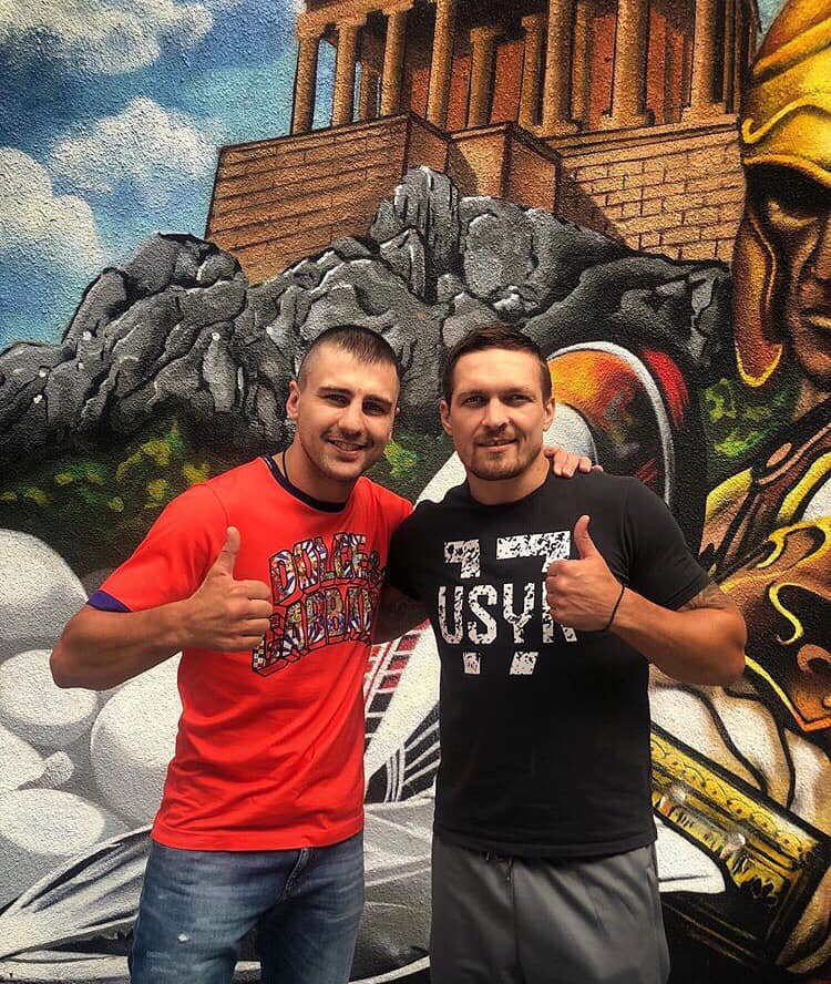 Известный украинский боксер Александр Усик разместил фото с именитым боксером Александром Гвоздиком на фоне граффити с гладиатором. Снимок Усик выложил на своей странице в Facebook.