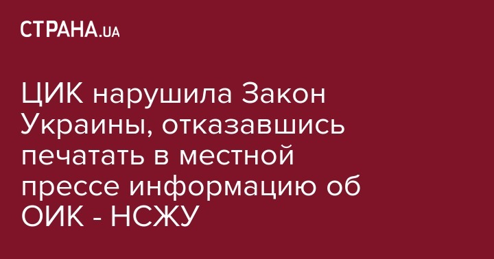 ЦИК нарушила Закон Украины, отказавшись печатать в местной прессе информацию об ОИК - НСЖУ