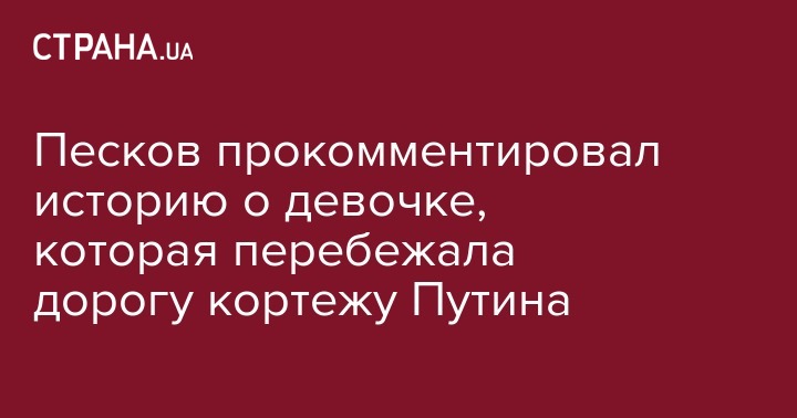 Пресс-секретарь президента России Дмитрий Песков прокомментировал слухи о девушке, якобы перебегавшей дорогу кортежу Владимира Путина в Екатеринбурге. Об этом сообщает издание "Газета.ru".